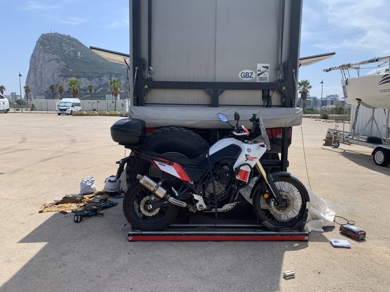 Als erstes haben wir unser treues Beiboot, den Gilera Runner 180 ausgetauscht gegen eine Yamaha T7. Der Roller hat uns treue und gute Dienste erwiesen. Auf unserer Europa Tournee haben wir ihn schon ziemlich viel eingesetzt. Gerade für kleinere Ausflüge und in den Städten war er schon super praktisch. Bei längeren Touren war es dann eher mühsam und abseits asphaltierter Straßen war es anstrengend. Machbar, aber nicht geil 😉