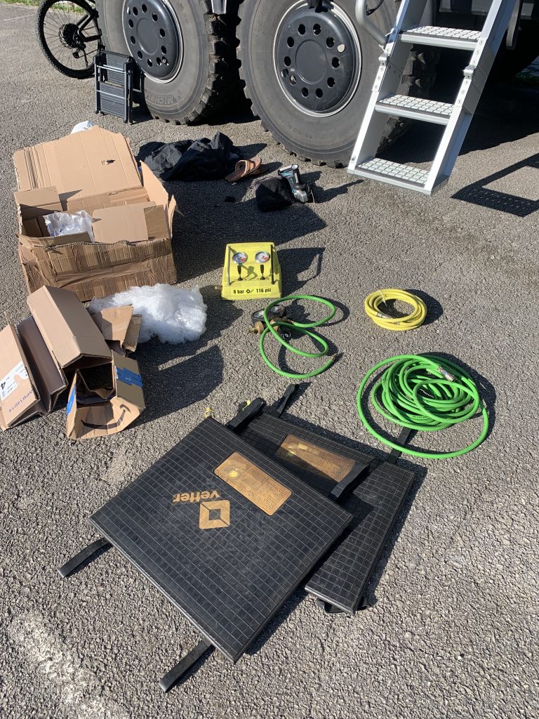 Dann haben wir uns noch einen Satz Hebekissen besorgt, die wir hoffentlich nie brauchen. Gibt es übrigens für recht bezahlbares Geld im deutschen Ebay.