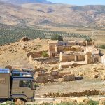 Bei Redeyef fuhren wir allerdings erst mal einige Zeit durch eine riesige Müllkippe 😳. Auf der eigentlichen Rommelpiste gab es nach wenigen Metern in der jüngeren Vergangenheit einen kleineren Felssturz, jedenfalls war die Straße blockiert, und wir mussten erst mal ein paar Erdarbeiten durchführen und mit dem ganz dicken Hammer eine Ecke von einem der Steine entfernen 😉 Sonst hätten wir den Reifen vermutlich an der Flanke beschädigt. Wir waren einfach ein bisschen zu dick! Aber irgendwann hat es dann gepasst. Die Piste selbst ist wenig spektakulär, was den fahrerischen Anspruch angeht – einfach eine etwas rumpelige, kurvige Straße aus Betonplatten und ein paar gerölligen Abschnitten. Sie bietet aber tolle Ausblicke auf die Berge und Canyons.