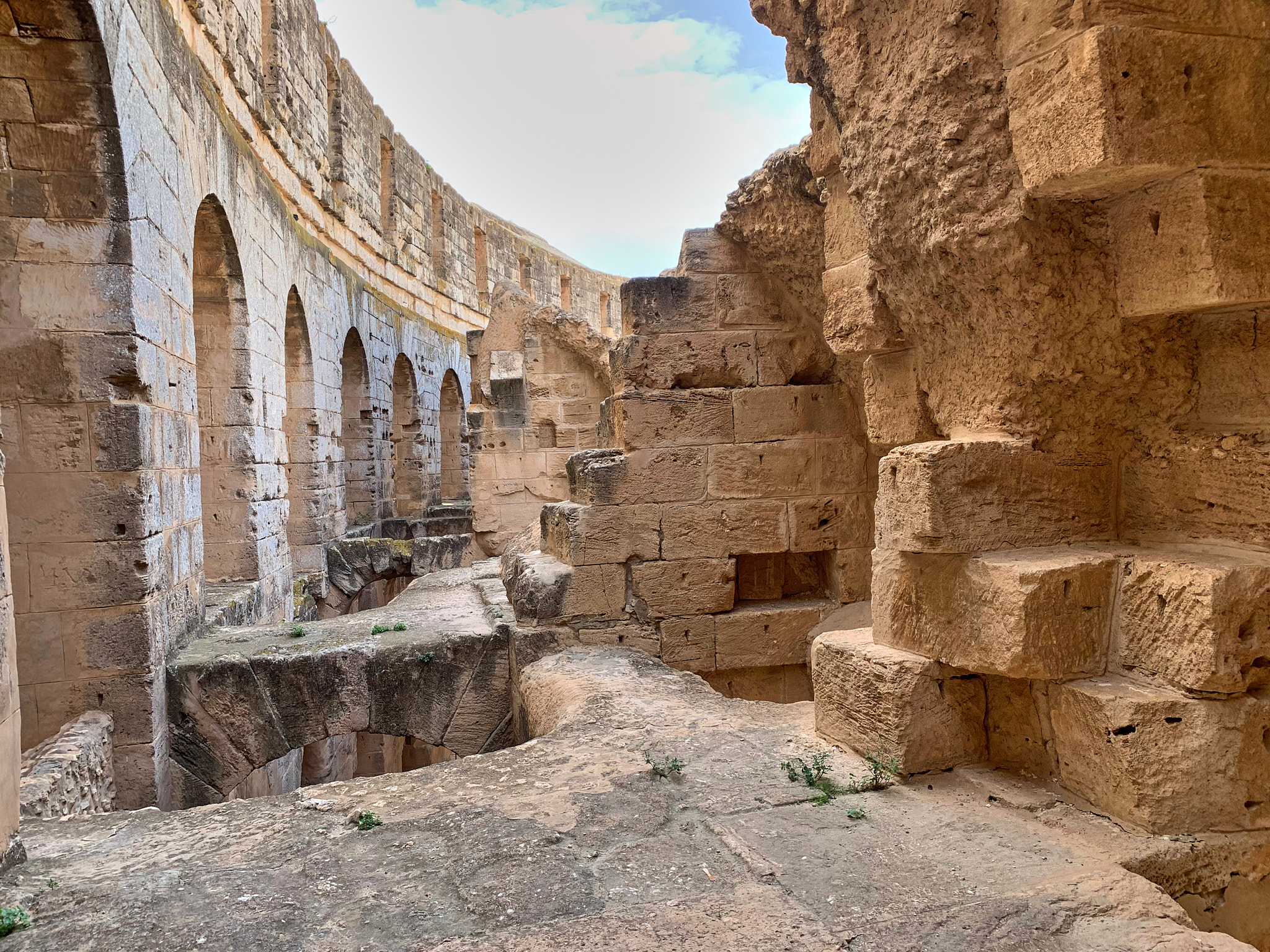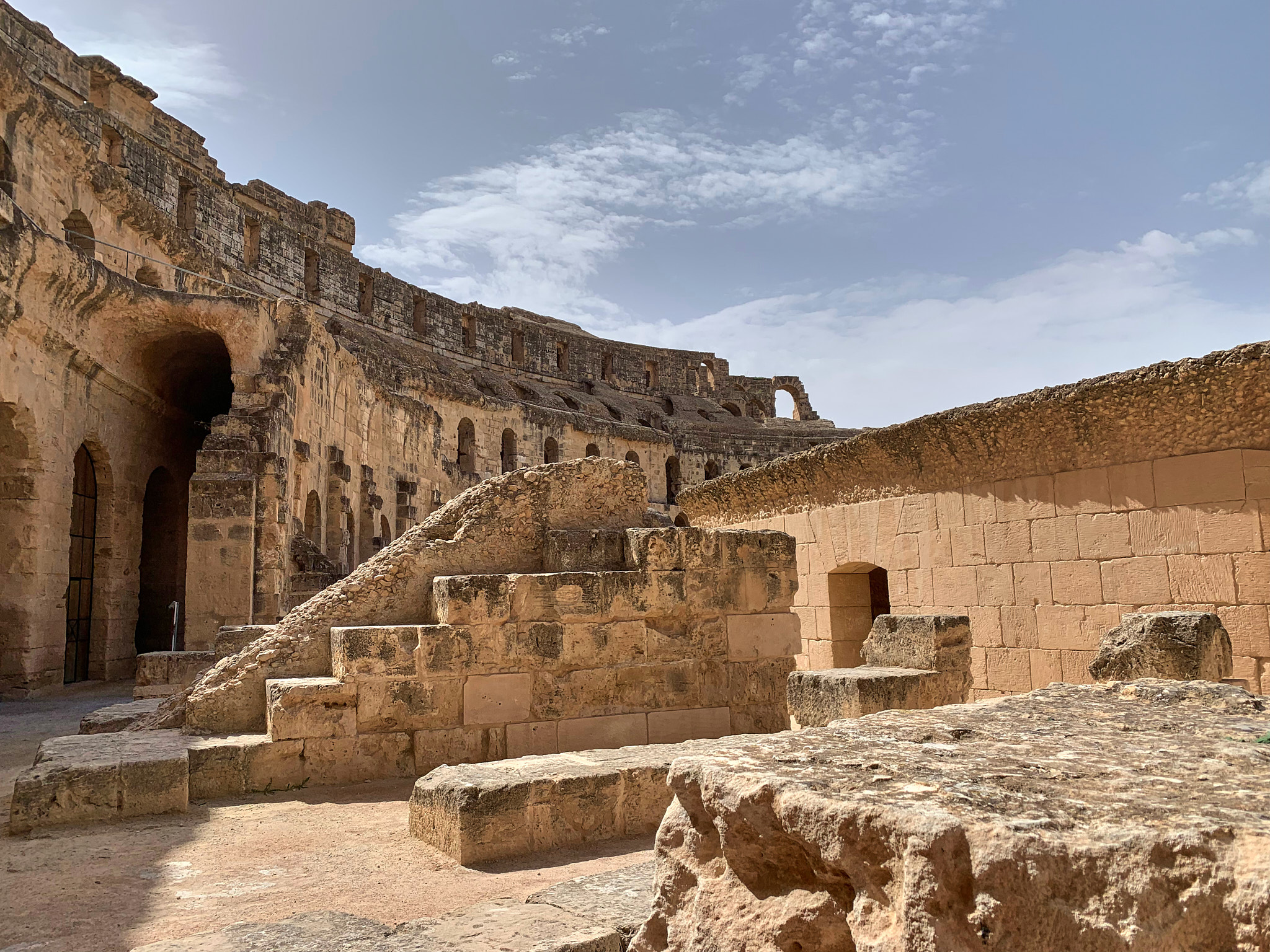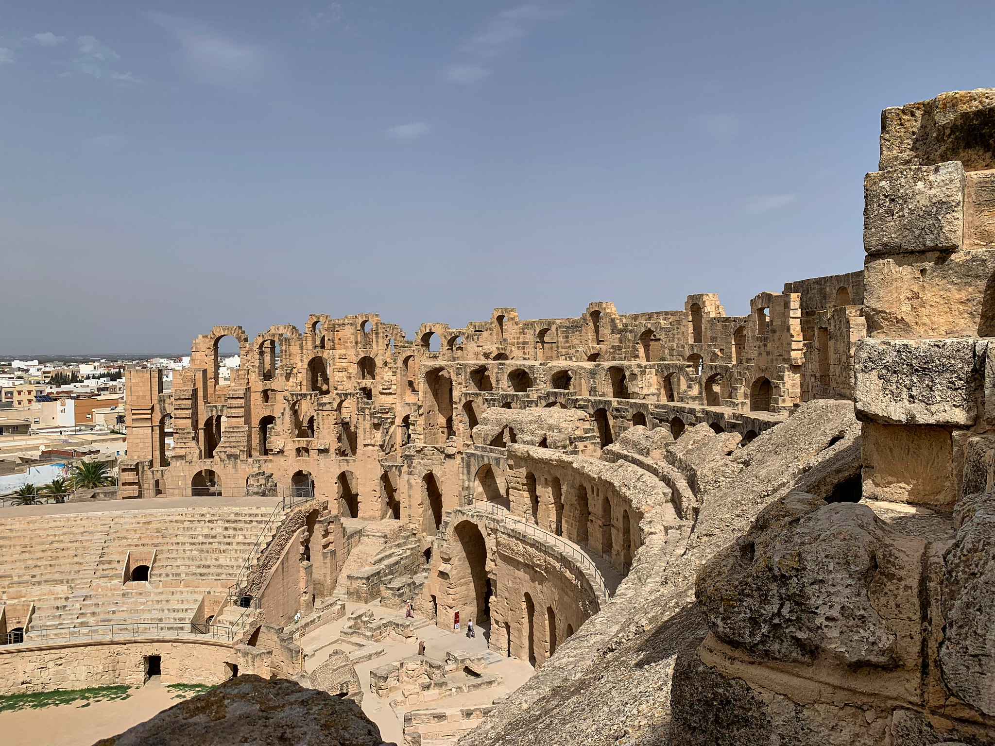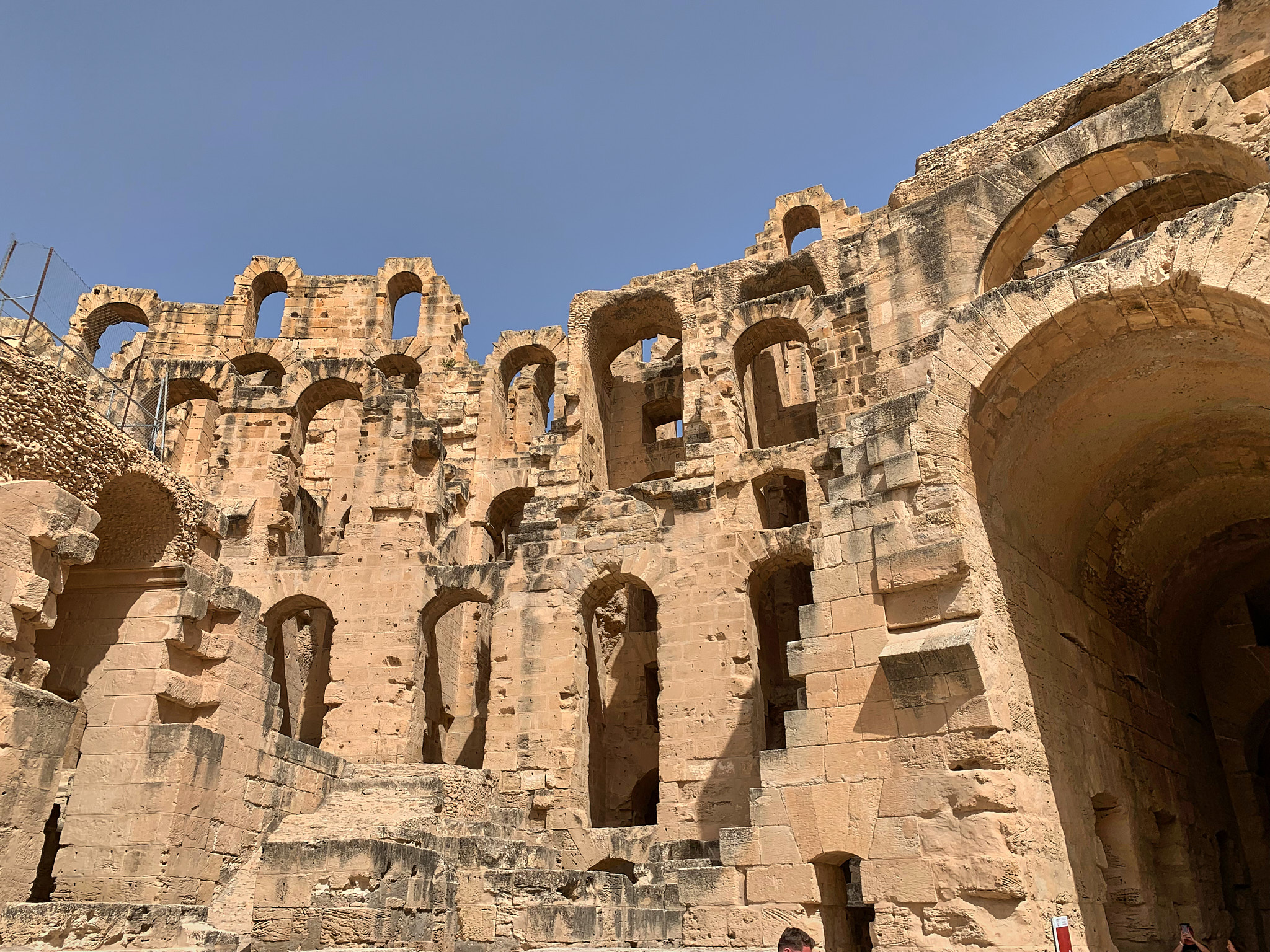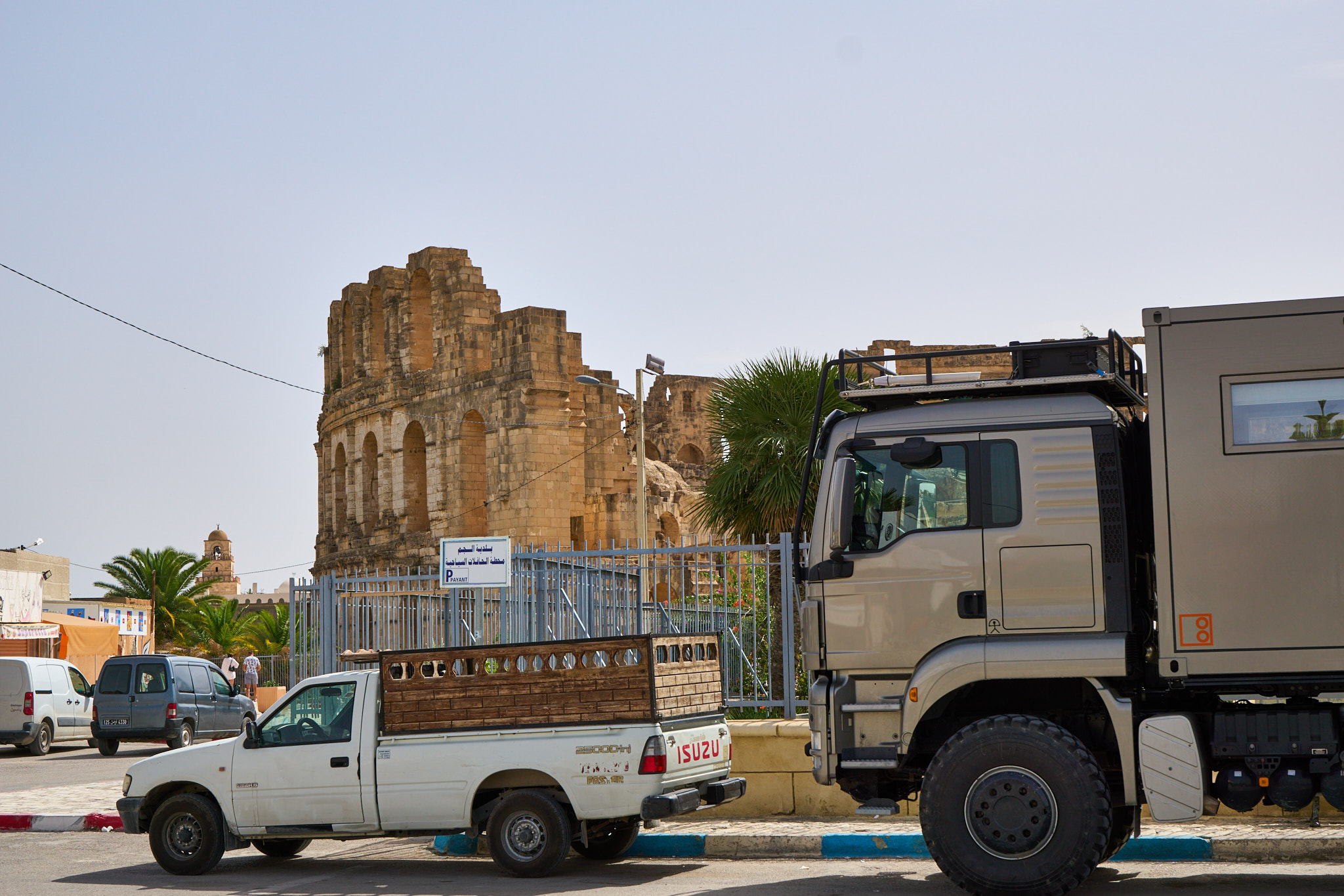 Auf dem Weg weiter nach Süden kamen wir durch El Djem. Dort steht das zweitgrößte Amphitheater der Welt, das extrem gut erhalten ist. Im Gegensatz zu seinem großen Bruder, dem Kolosseum in Rom, ist man dort fast alleine. Wir konnten den LKW direkt vor dem Eingang parken und in aller Ruhe das beeindruckende Bauwerk besichtigen.
