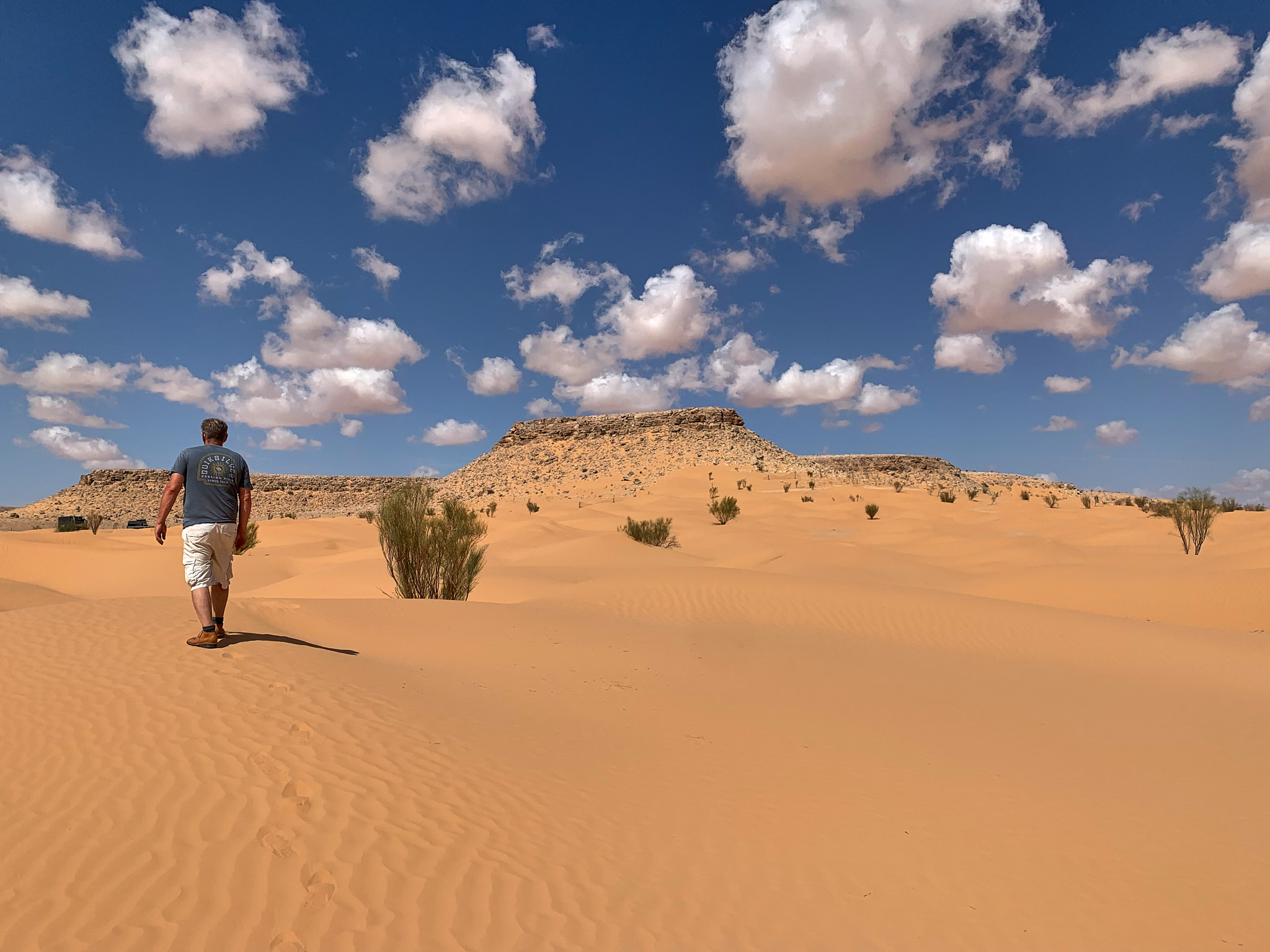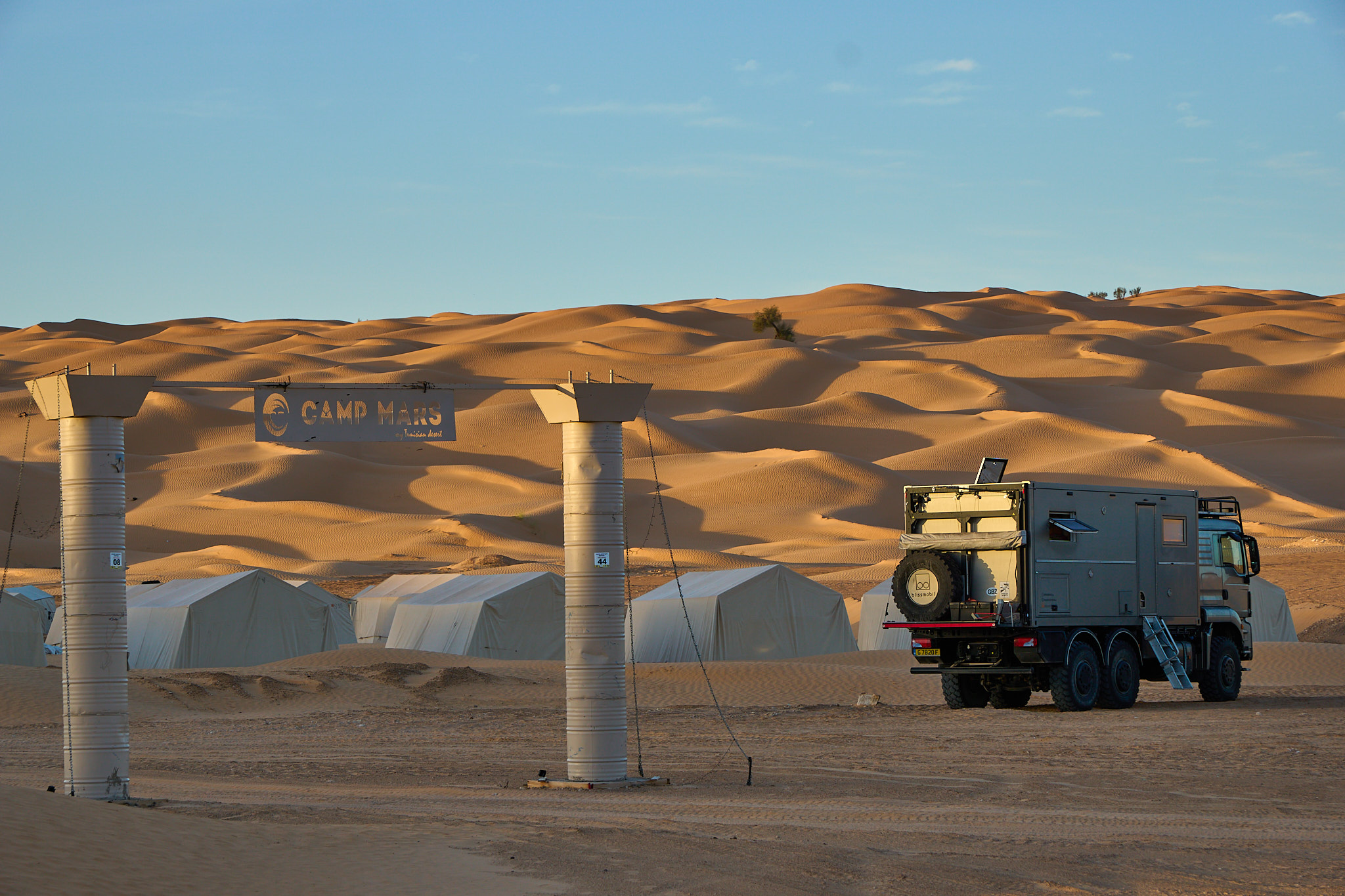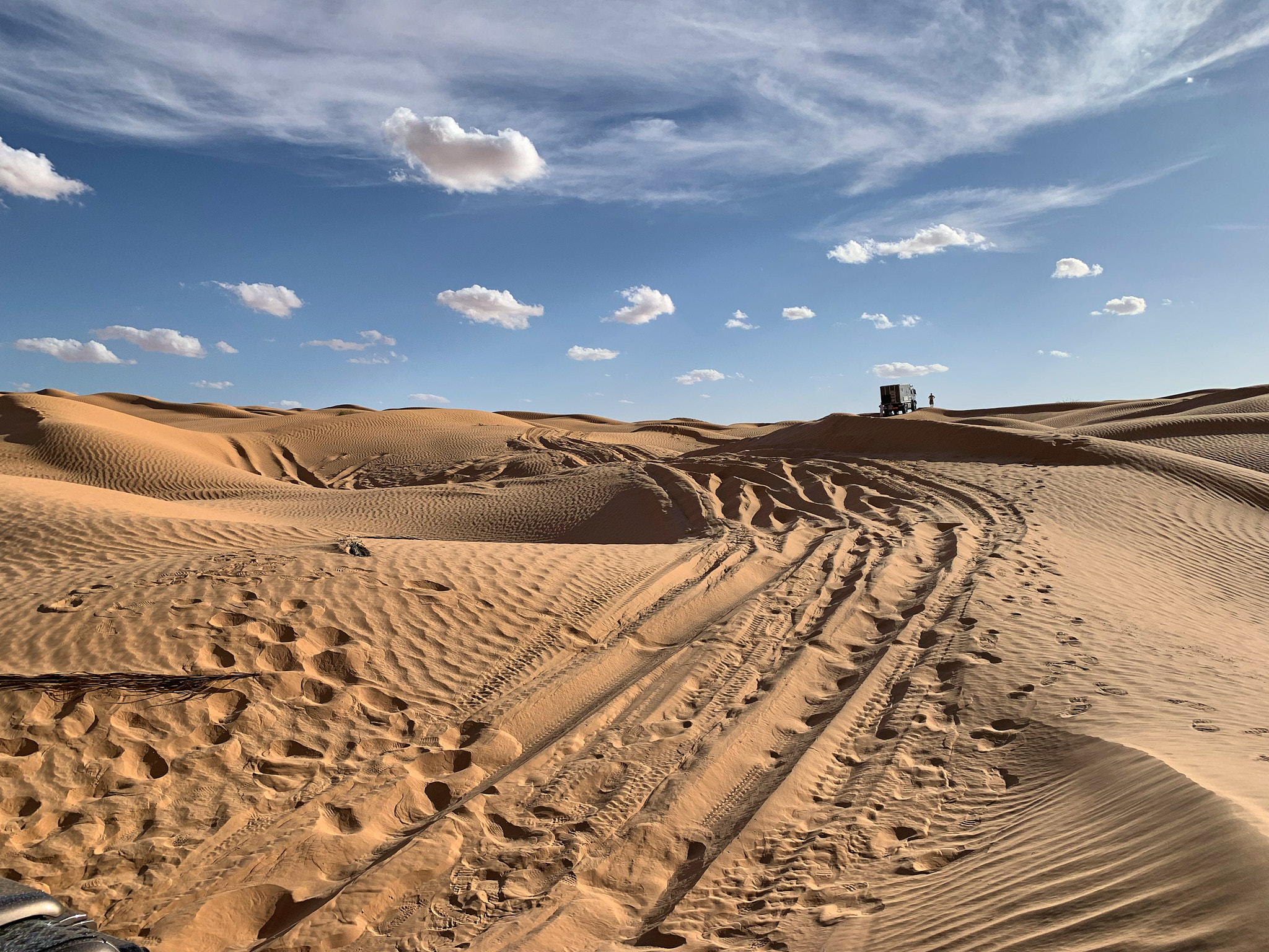 Nach dem Aufstehen nahm ich Kontakt zu den Mitarbeitern und Fahrern des Camps auf. Eigentlich wollten wir nämlich noch ein Stück weiter nach Süden, aber laut Angaben der lokalen Guides waren alle Pisten, die nach Osten, Westen oder weiter nach Süden führen, aktuell nicht vorhanden. Nach den letzten Sandstürmen waren sie verweht und es hatte noch niemand eine neue Route durch die Dünen gefahren. Kalkulierbar war also nur derselbe Weg, den wir gekommen waren….. alles andere hätte länger dauern können.
