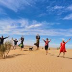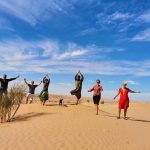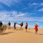 Die vermutlich chinesische dreiköpfige Reisegruppe, die er an Bord hatte, stieg nach mehreren sinnlosen Befreiungsversuchen mit maximaler Motordrehzahl aus und begann nach einigen Diskussionen dem Fahrer zu helfen, mit bloßen Händen das Auto zu befreien. Flehende Blicke auf unser Berge-Equipment mussten wir erst mal mit: „Sorry – not possible!“ quittieren 😉 Als wir nach kurzer Zeit Bernhard befreit hatten, buddelten wir dann aber doch auch noch den unkooperativen, inzwischen klitschnass geschwitzten Tourguide und die chinesische Reisegruppe aus, die in Gedanken schon ihr Nachtlager mit den Toyota-Sitzbezügen zwischen den Dünen aufgeschlagen hatten. Natürlich nicht, ohne ihnen vorher noch 10 Minuten zuzuschauen und ein kühles Getränk zur Erfrischung zu nehmen……. Den Rest der verdienten Strafe hat der Kollege sicher aus den Blicken seiner chinesischen Reisegruppe erhalten 😉