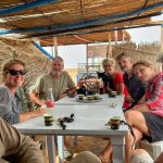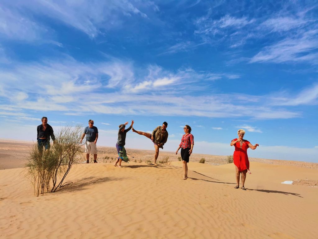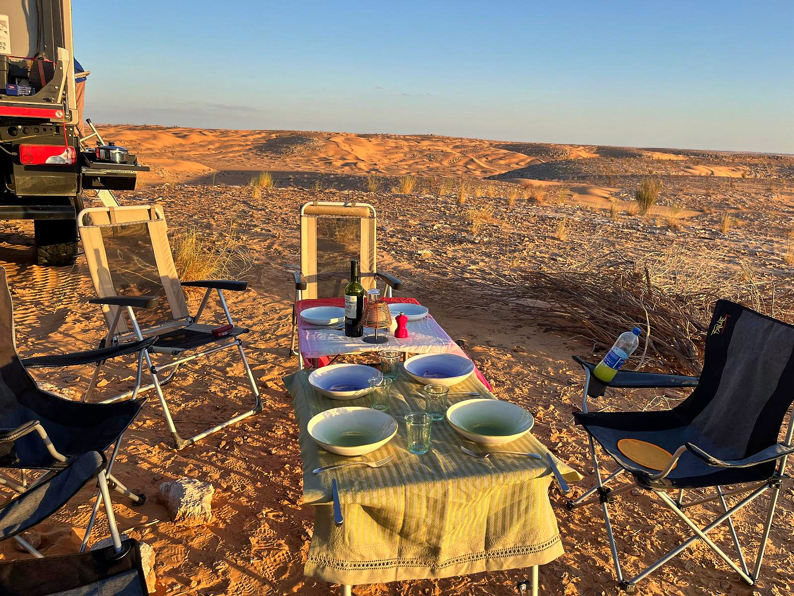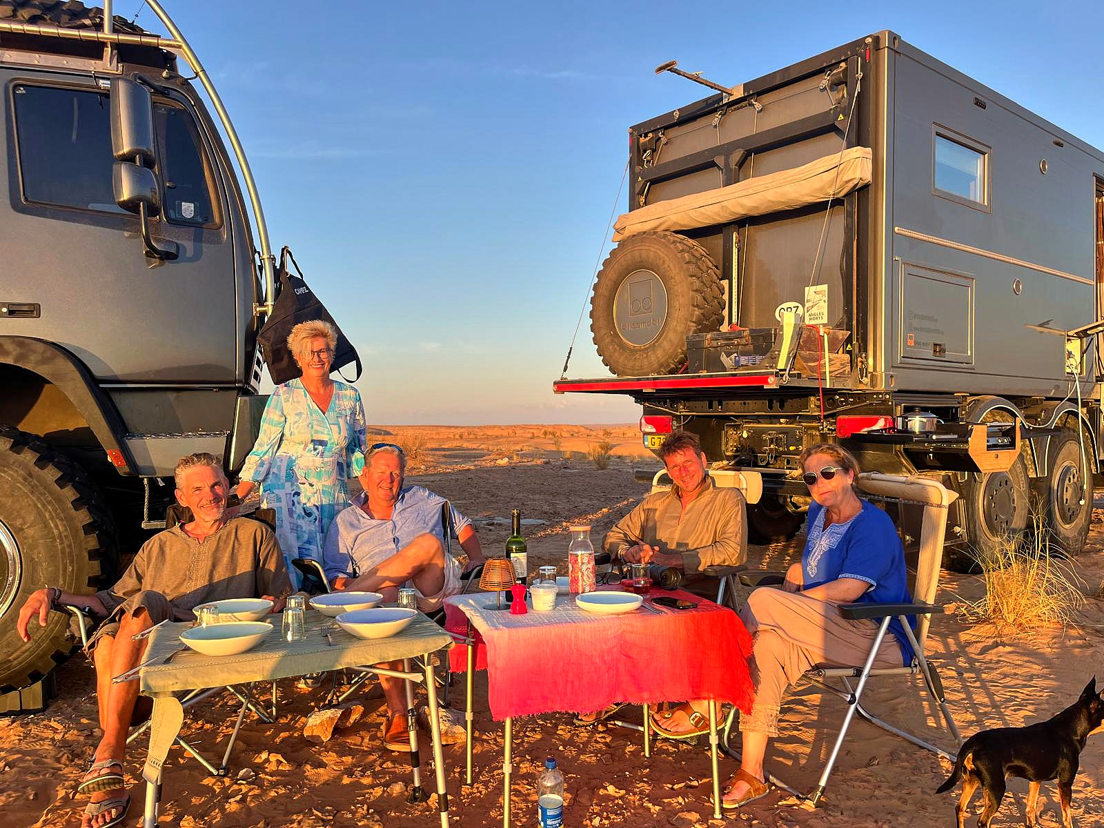 Wenige Kilometer weiter, zurück in Douz, ließen wir bei einem fantastischen Abendessen auf dem Campingplatz Cinderella Bernhards Geburtstag ausklingen.