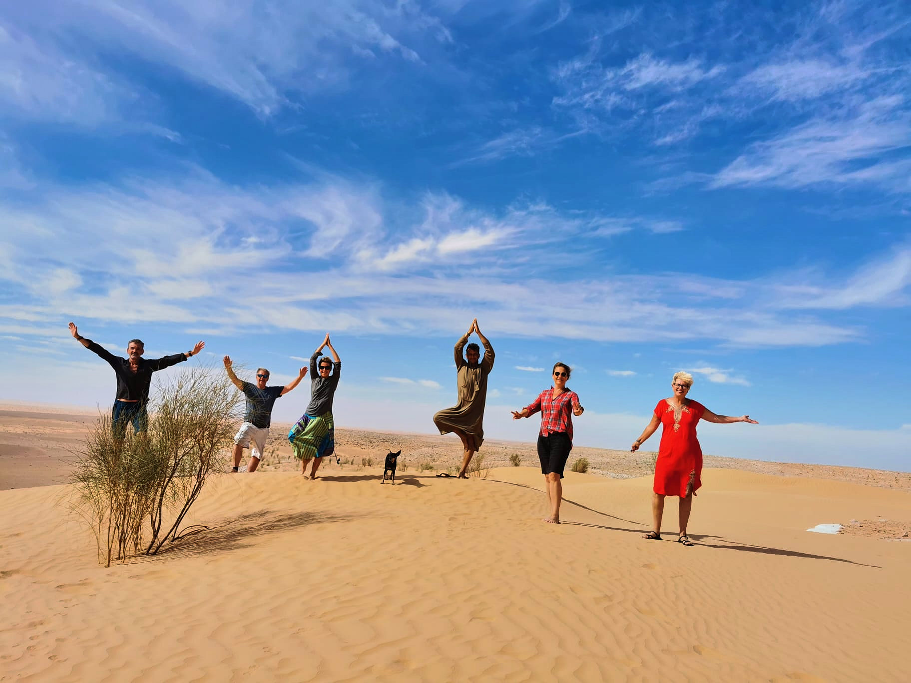 Am nächsten Morgen starteten wir gemeinsam in Richtung Camp Mars, am Fuße des Tafelbergs Tembaine gelegen. Insgesamt lagen rund 100 km Strecke vor uns: die ersten 20 asphaltiert, etwa 60 mehr oder weniger zugewehte Pisten und die letzten 20 quer durch ein Dünenfeld 🤪. Mega!! Viel Fahrspaß, ein bisschen buddeln und viel schwitzen und lachen 😛.