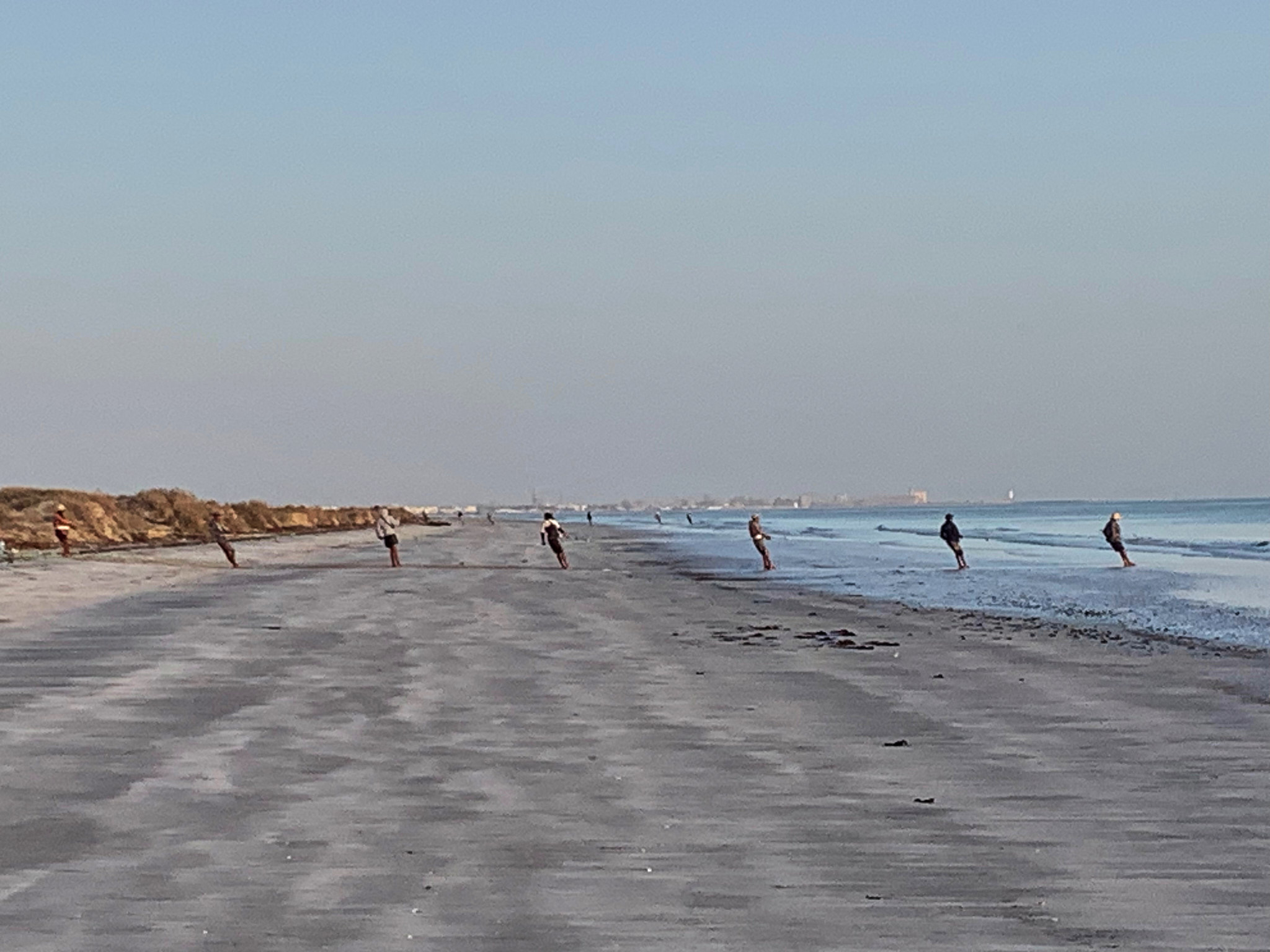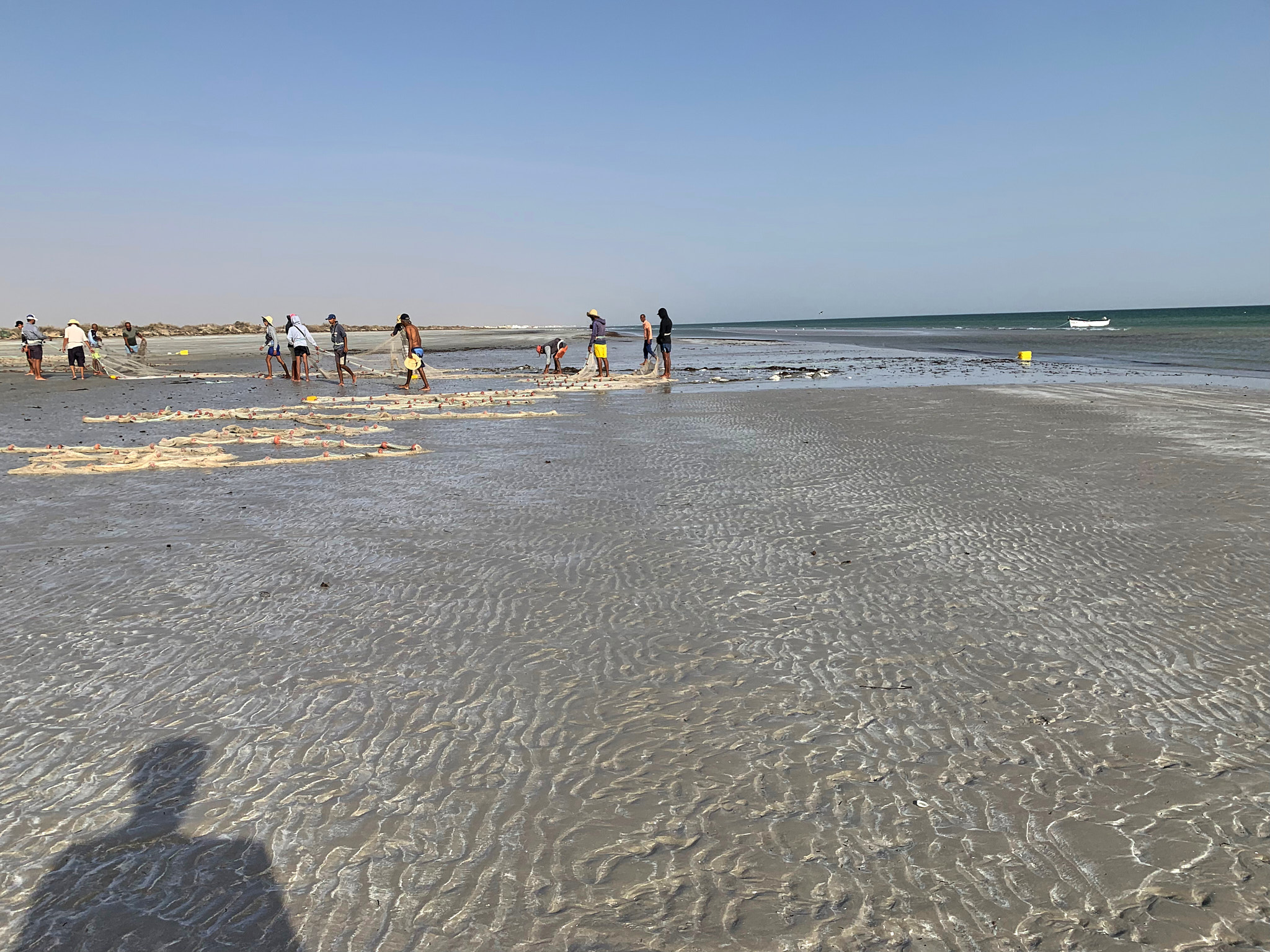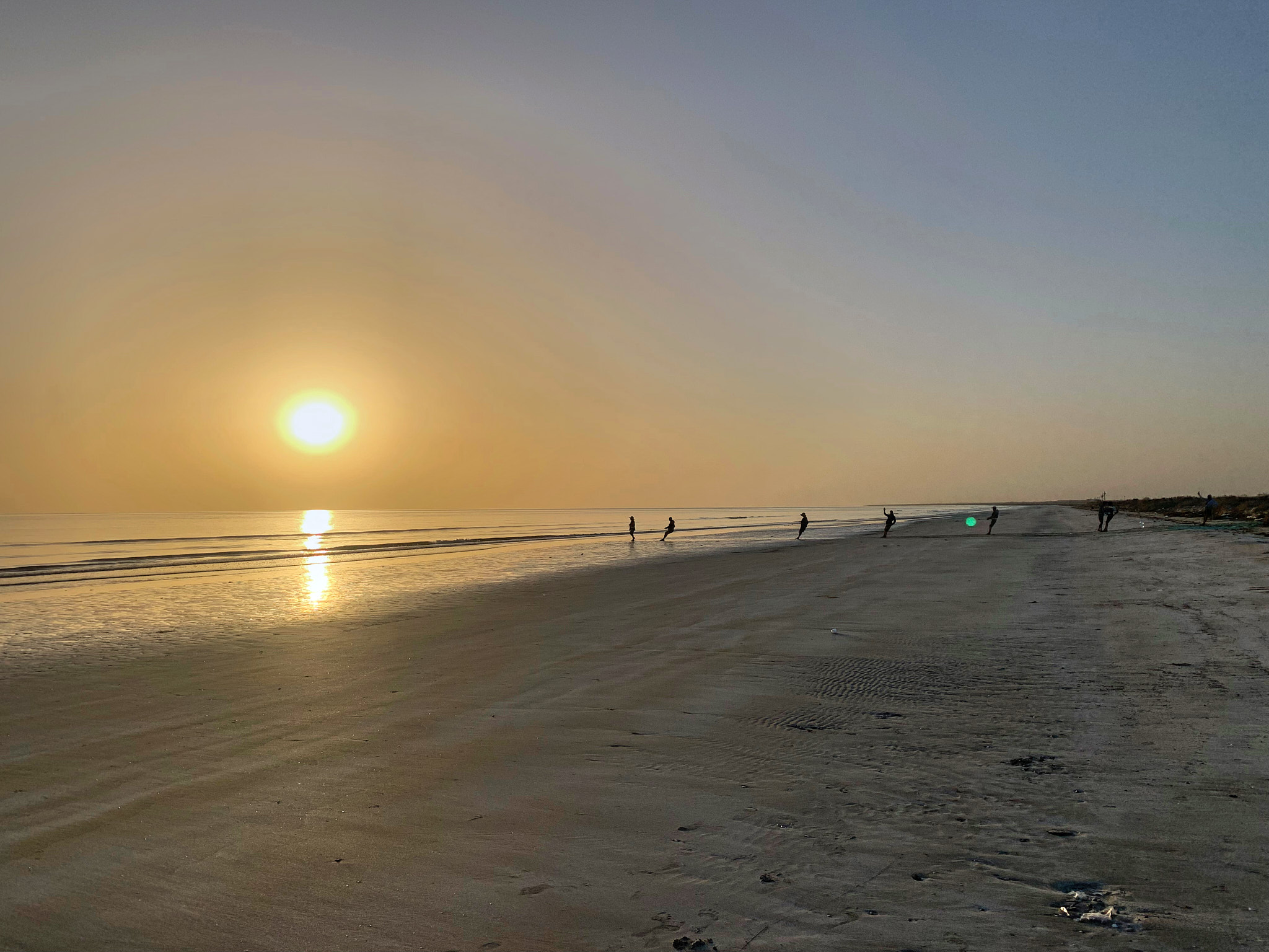 Als ich am nächsten Morgen um 6 zum Joggen rausging, konnte ich einer Gruppe Fischer bei der Arbeit zuschauen. Hat ein super cooles Bild ergeben! Leider war die Ausbeute für die 21 Fischer und ihre 3,5 Stunden Arbeitseinsatz sehr überschaubar. Da ist noch nicht mal für jede der 21 Familien ein Mittagessen herausgekommen. Einer der Fischer erzählte mir, es würde immer weniger……