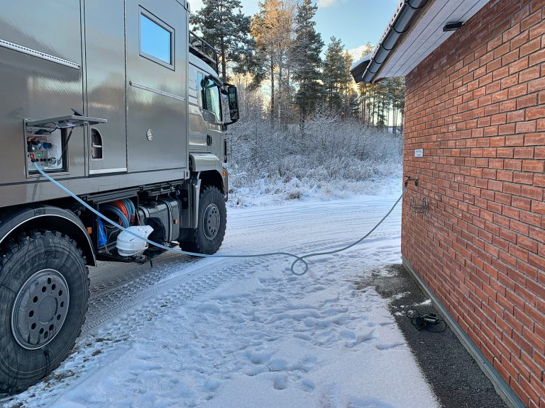Die Niederlande zum Beispiel gibt an bis -15 Grad, Deutschland und Dänemark bis zu -20 Grad. Daraus ergibt sich nun in meiner groben Rechnung, dass der aus zig Ländern zusammengemischte Diesel, im besten Fall eine Temperaturbeständigkeit bis etwa -15 Grad aufweist. Etwas knapp, wenn man gerade aktuell aufs Thermometer schaut und dann noch die Aussichten auf die nächsten Tage dazu nimmt. Daher gibt es in Norwegen und wohl auch in Schweden ein spezielles Polardiesel, was dann bis rund -40 Grad klaglos seine Dienste tun soll. Ok, ich dachte Winterdiesel ist Winterdiesel und die Existenz von Polardiesel war mir bisher unbekannt. Egal wie, wir müssen zumindest einen unserer Beiden Tanks möglichst schnell leeren und mit vernünftigem Sprit füllen. Die viel beworbenen Additive fallen auch aus, der Werkstattmeister von MAN in Drammen hatte mir davon nachhaltig abgeraten. Ich glaube ihm das mal, er sagte das Problem gibt es öfter mit Ausländischen LKW Fahrern und die Additive machen immer mehr Probleme als sie nutzen…….. puh wir sind doch nicht die einzigen Deppen 😉