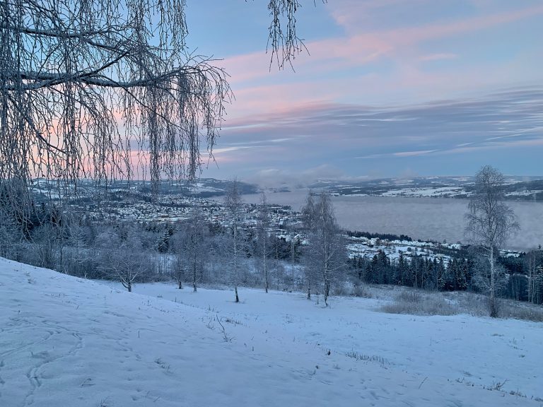 Das angepeilte Ziel war Gjøvik, etwa 120 Km entfernt. Viel weiter kommt man hier tatsächlich nicht, zumindest nicht wenn man im hellen ankommen will und morgens nicht direkt mit den ersten Lichtstrahlen losfährt, sondern erst um 12 ;-). Es gibt relativ wenige Autobahnen hier in Norwegen und auf den kleinen verschneiten Nebenstrecken und Landstraßen kommt man einfach nicht so wahnsinnig schnell vorwärts.