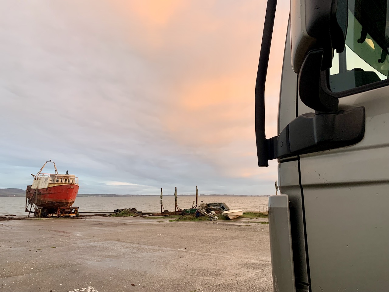 Am Ankunftshafen in Cairnryan, einem verschlafenen kleinen Nest in Schottland, haben wir unsere Vorräte im Supermarkt nochmal aufgestockt und uns dann für den Abend einen gemütlichen Platz in der Bucht am Loch Ryan gesucht.