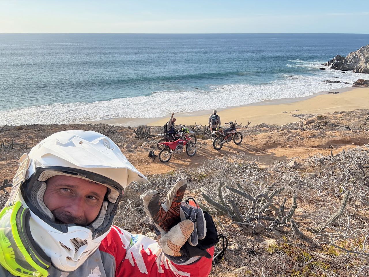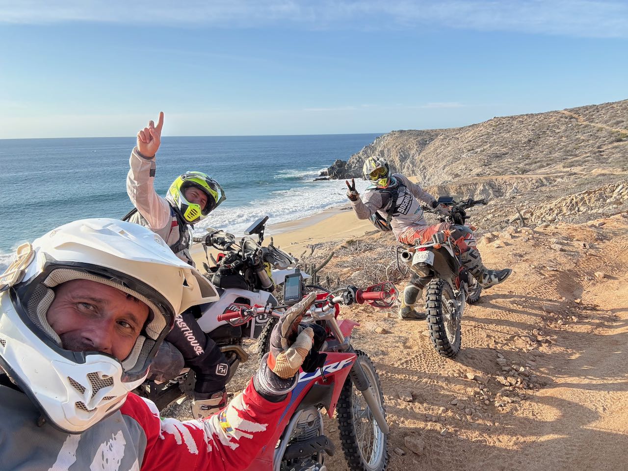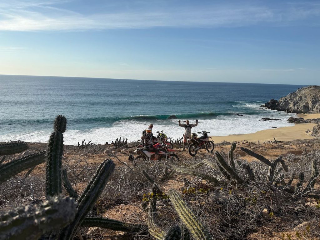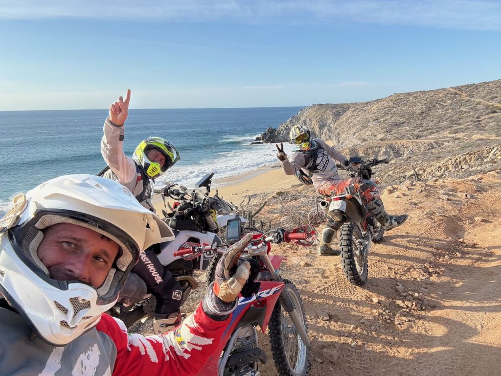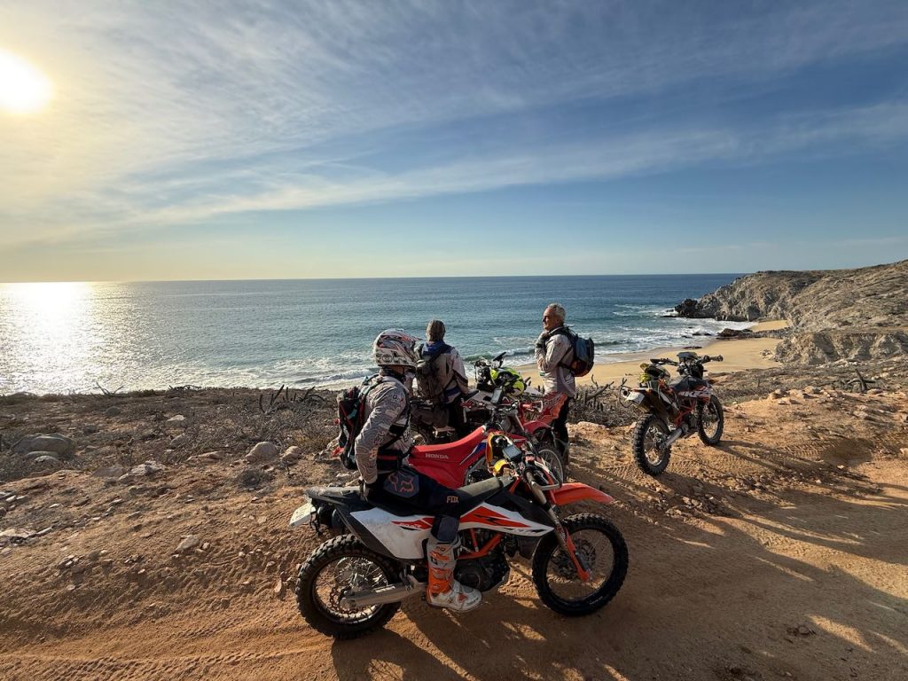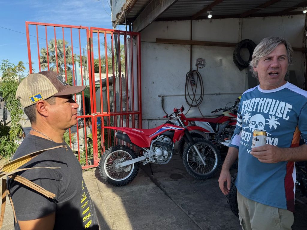 Wir treffen Alan und Stefan am Flughafen, die beiden hatten schon einen Pick-Up gemietet, mit dem wir dann gemeinsam die rund 100 km nach Todos Santos fuhren. Kurzer Check-in bei unserer Unterkunft und dann ab zu John in die Garage um die Mopeds vorzubereiten. Vorher muss ich noch im Ort meins erst mal abholen – da ich ja erst recht kurzfristig entschieden hat überhaupt herzukommen, war es gar nicht so einfach, überhaupt noch ein Motorrad zu organisieren. Eine kleine Honda CRF 250 – ich bin seeeehr gespannt 😂😂