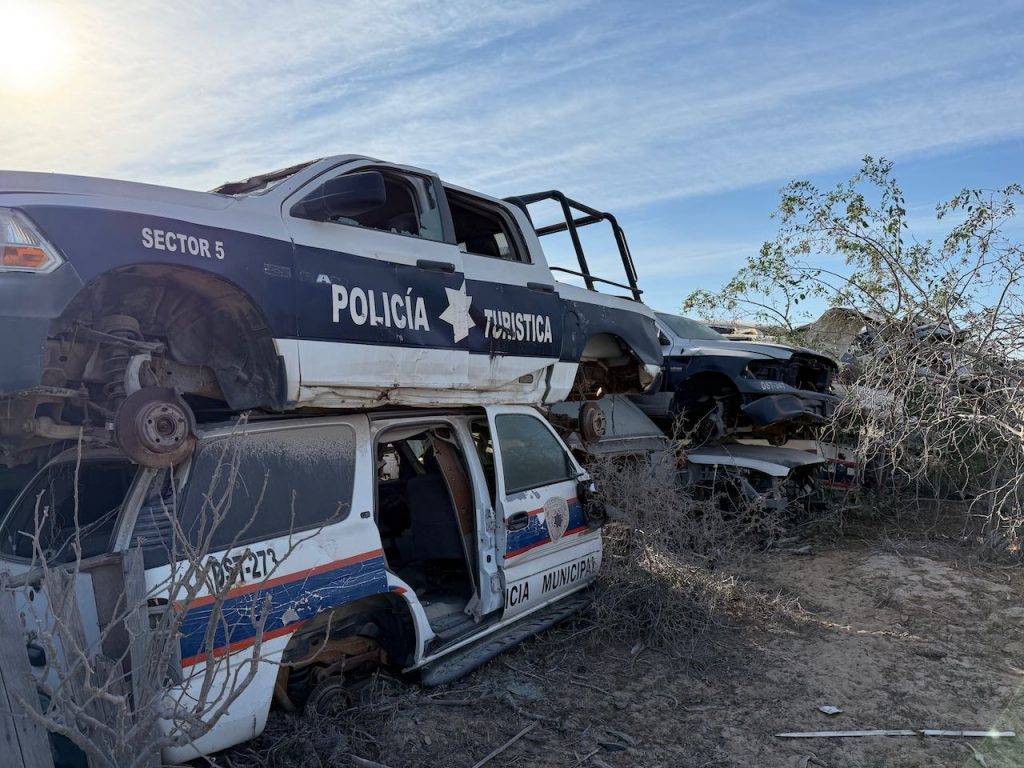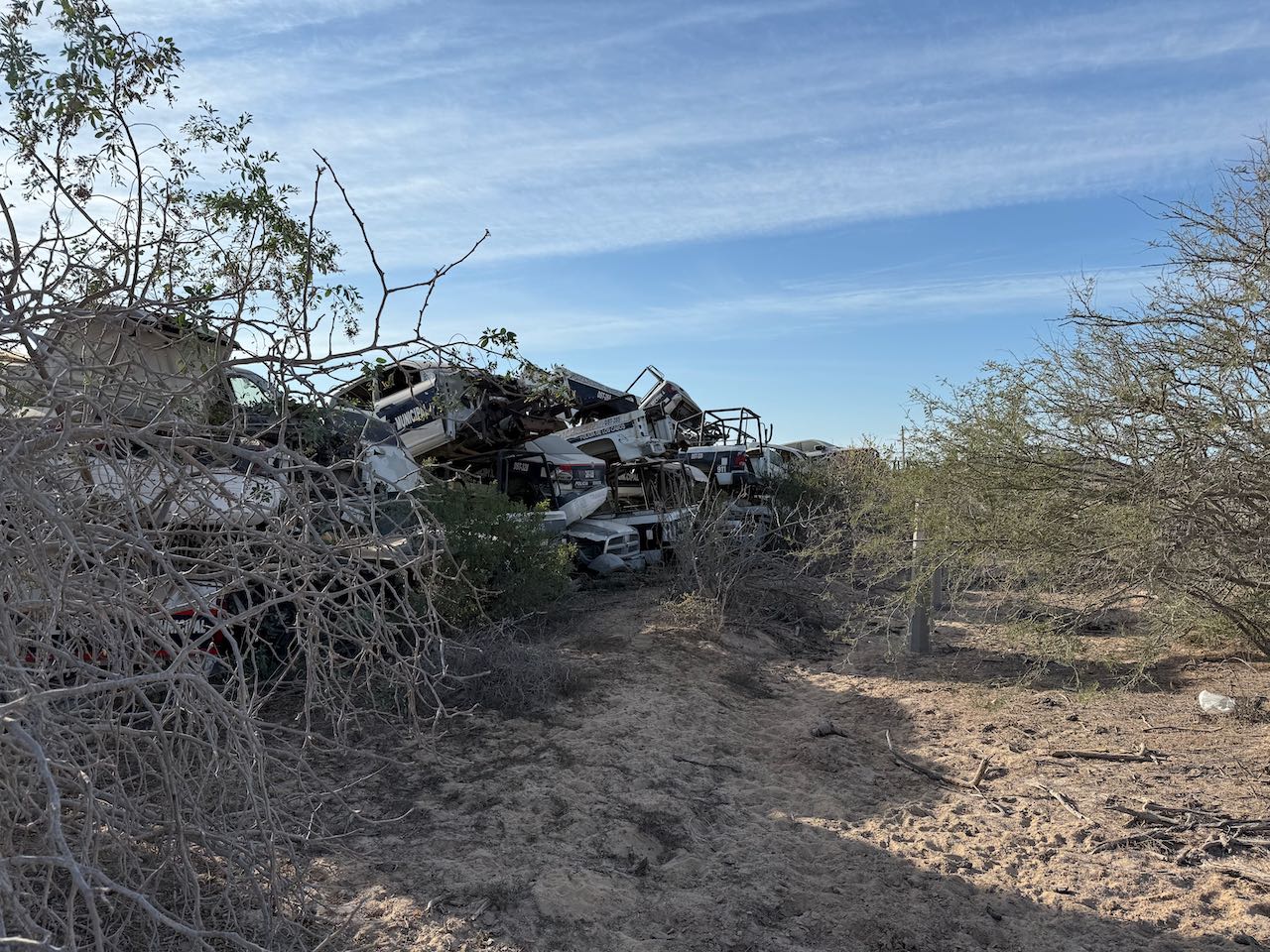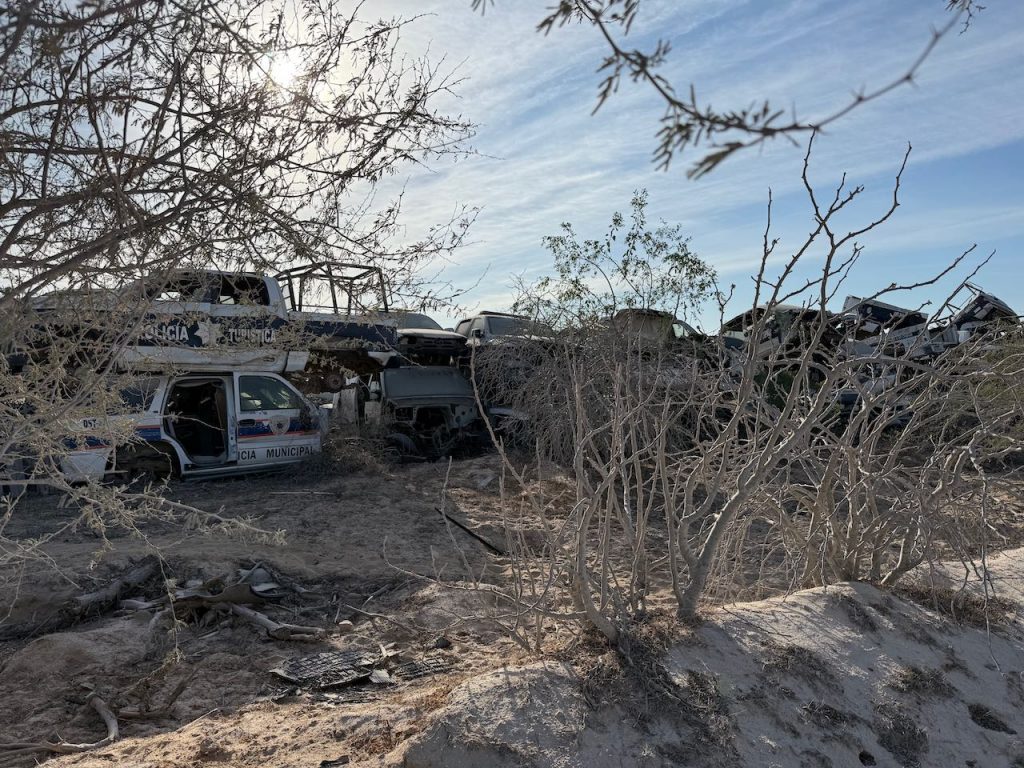 Auf dem Rückweg fanden wir noch einen Polizeiauto Friedhof – coole Kulisse 😂